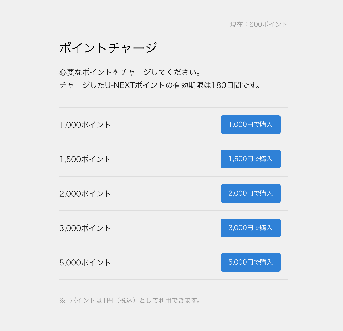 ポイントを払って視聴する事が可能な動画は1つの作品につき300〜600ポイントが平均的な数字ですので大体1作品分のポイントということになります。